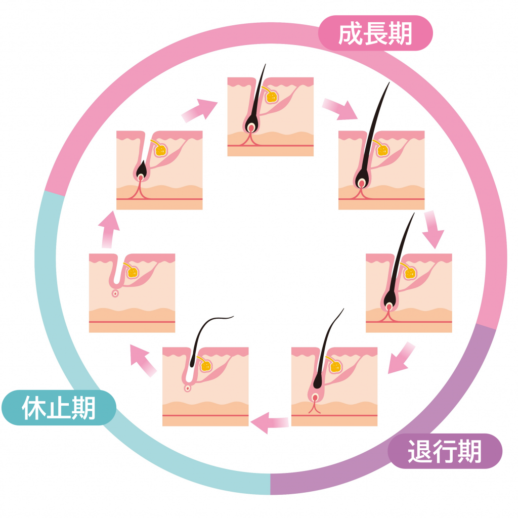 その下では、もう次の毛が待機しています。そしてまた成長期へ……というように、このサイクルを一生くり返しているのです。