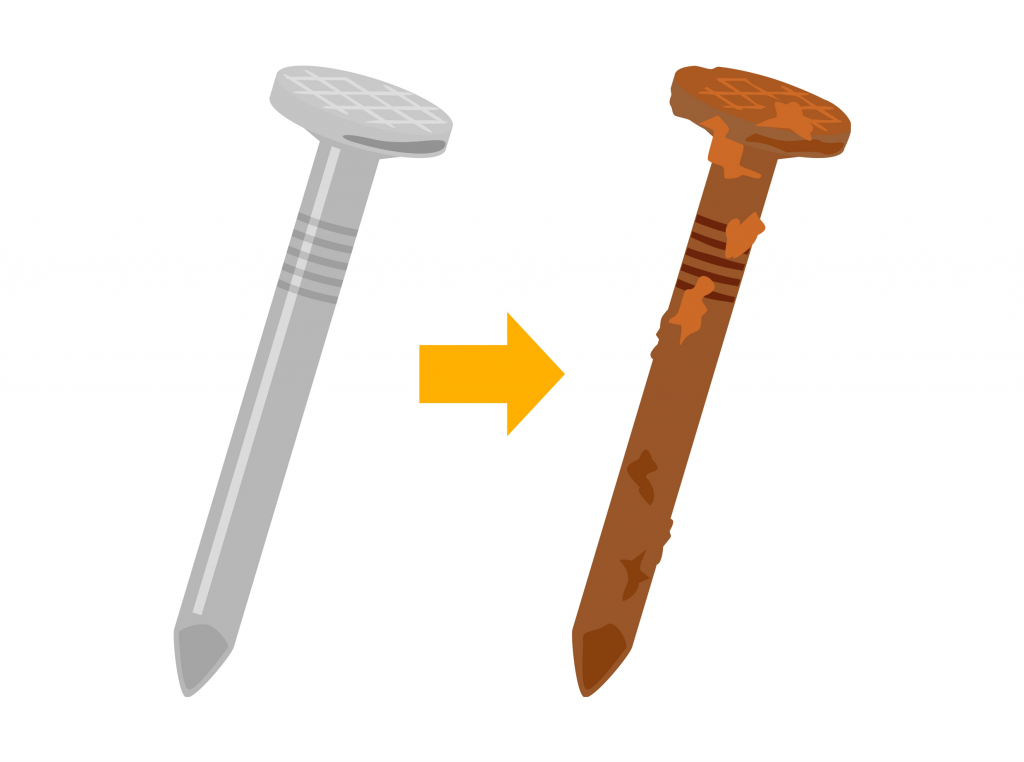 これは、時間が経つと鉄が錆びてしまう現象を思い浮かべると分かりやすいかもしれません。